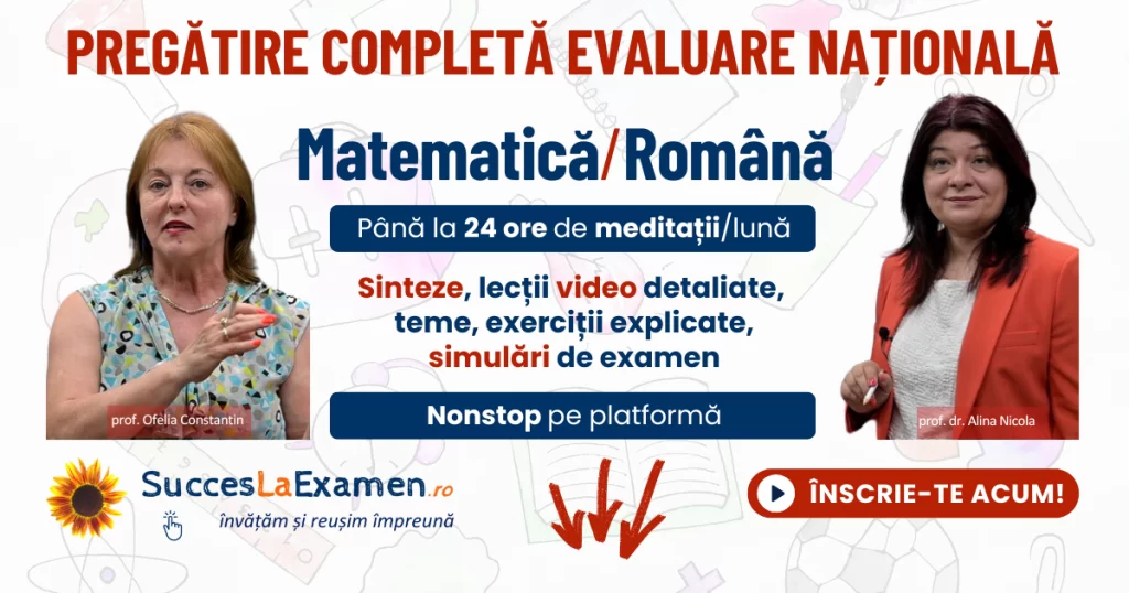Link înscriere: https://succeslaexamen.ro/pregatire-examen/evaluare-nationala/