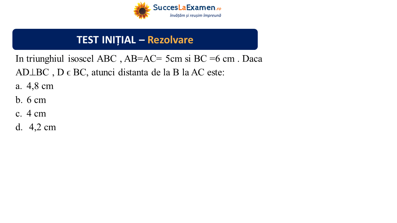 Test inițial – MATEMATICĂ: algebră și geometrie – clasa a VIII-a