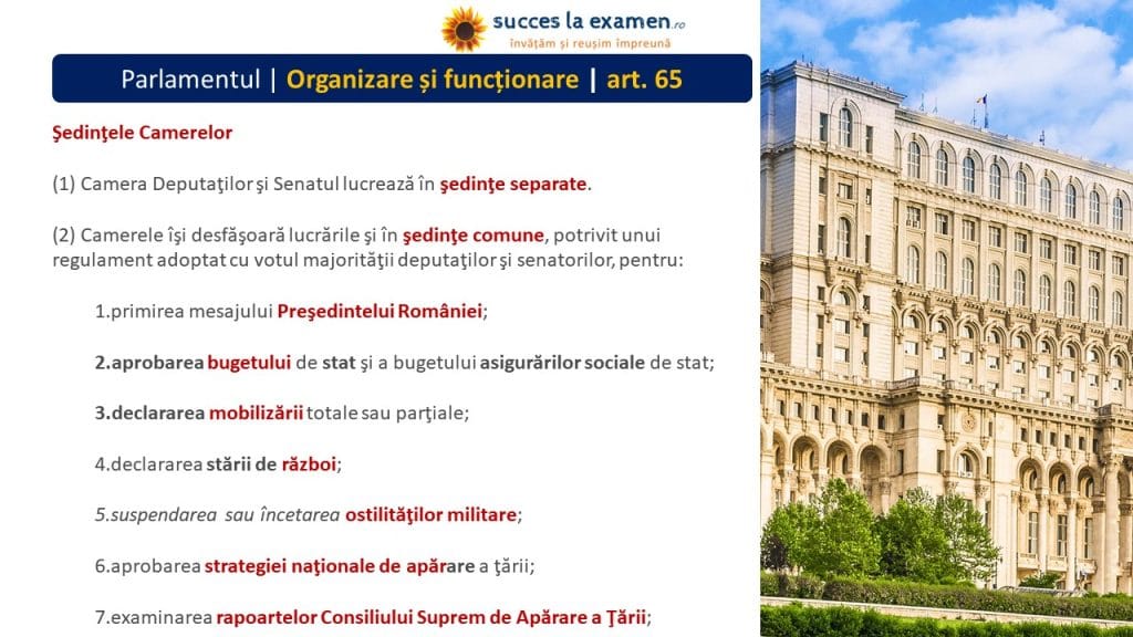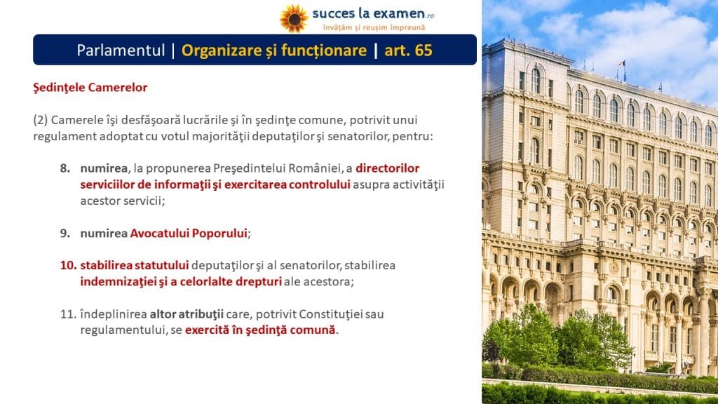 k. îndeplinirea altor atribuții care, potrivit Constituției sau regulamentului, se exercită în ȘEDINȚĂ COMUNĂ.