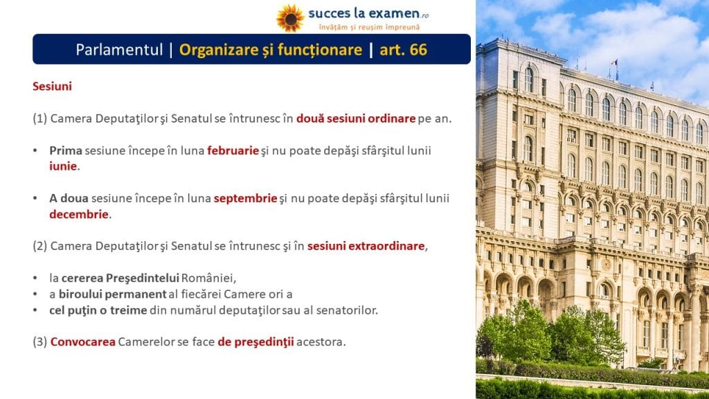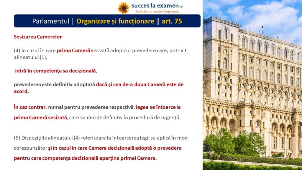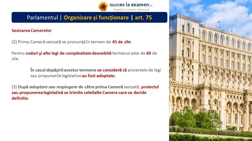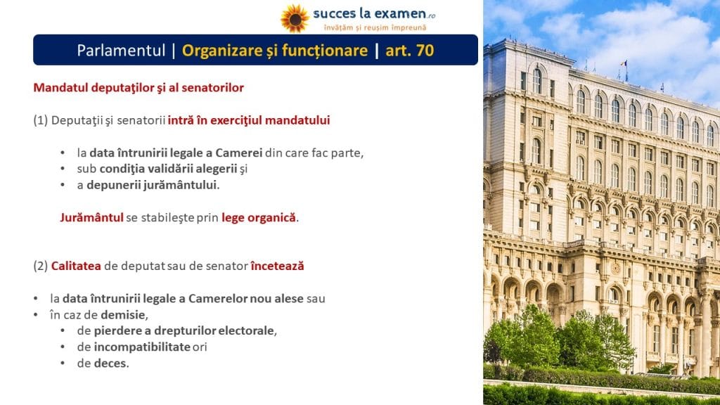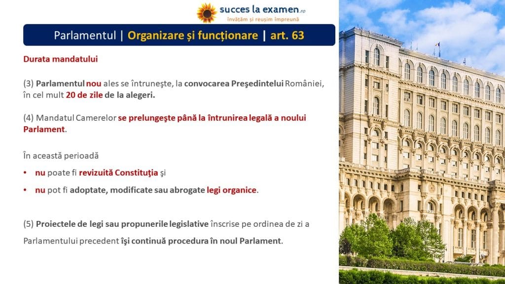 - PREȘEDINTELE CAMEREI DEPUTAȚILOR și PREȘEDINTELE SENATULUI se aleg pe durata mandatului Camerelor.