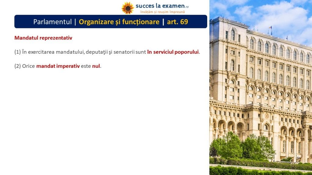 (1) În exercitarea mandatului, DEPUTAȚII și SENATORII sunt în SERVICIUL POPORULUI.