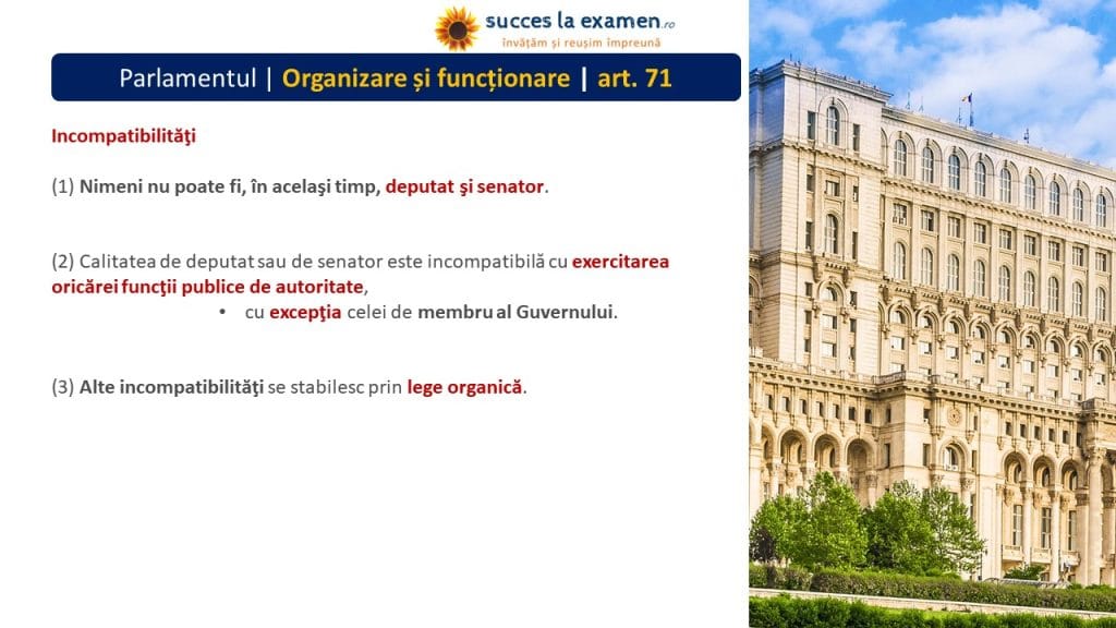(1) Nimeni nu poate fi, în același timp, DEPUTAT și SENATOR.