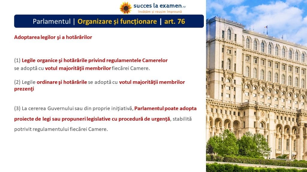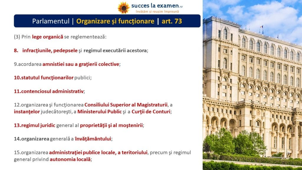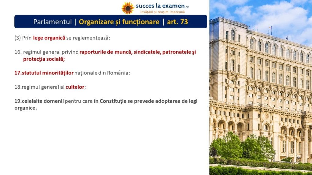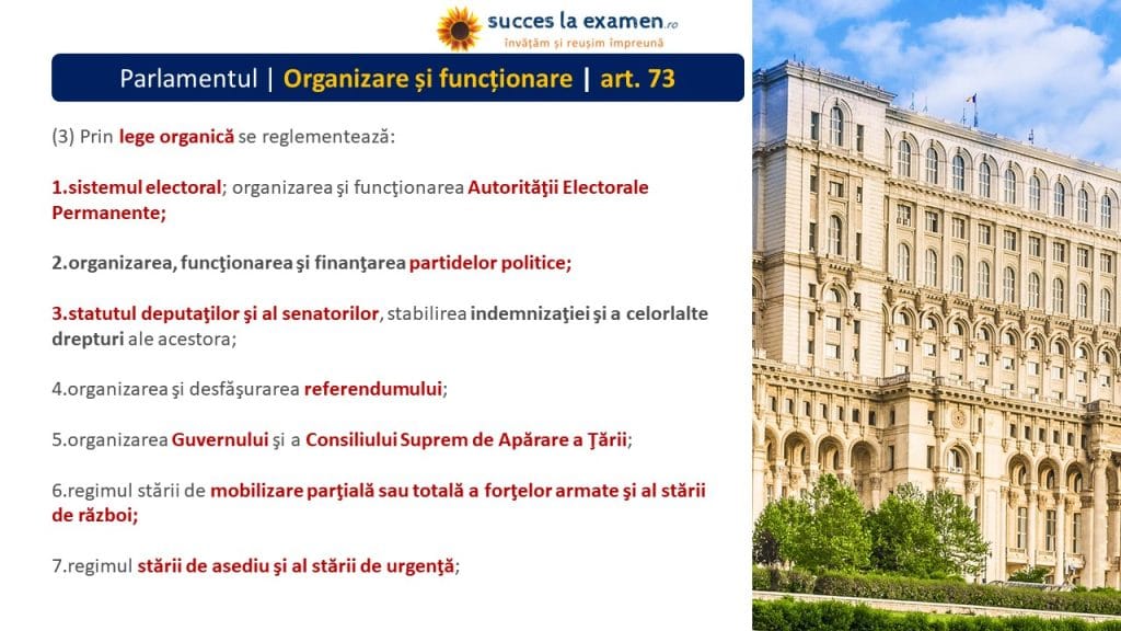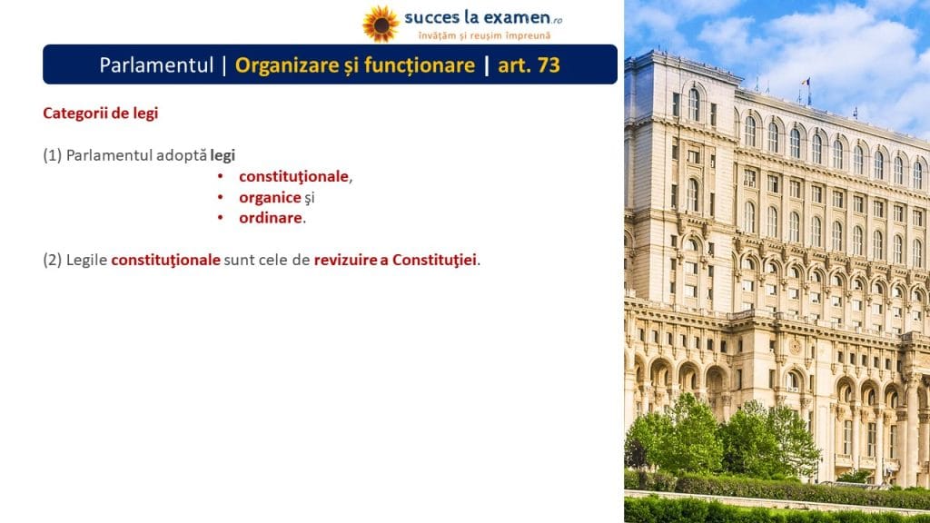 (1) PARLAMENTUL adoptă LEGI CONSTITUȚIONALE, LEGI ORGANICE și LEGI ORDINARE.