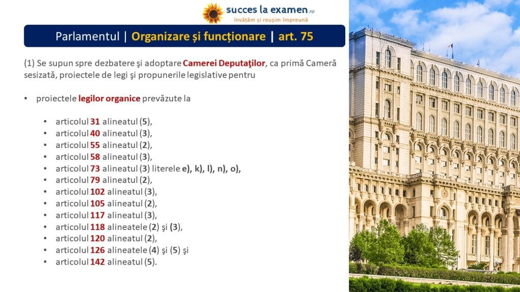 - proiectele legilor organice prevăzute la