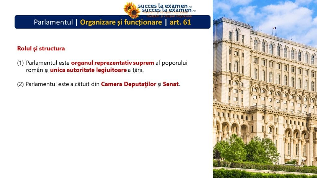 (1) PARLAMENTUL este organul reprezentativ suprem al POPORULUI ROMÂN și unica autoritate legiuitoare a țării.