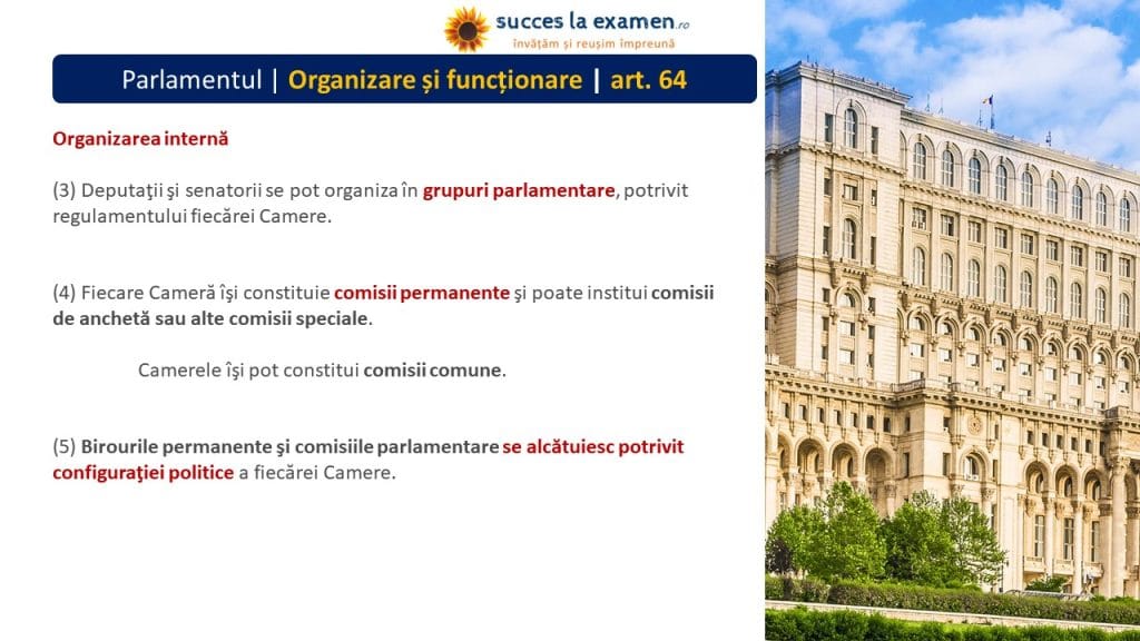 (4) Fiecare Cameră își constituie COMISII PERMANENTE și poate institui COMISII DE ANCHETĂ sau ALTE COMISII SPECIALE.
